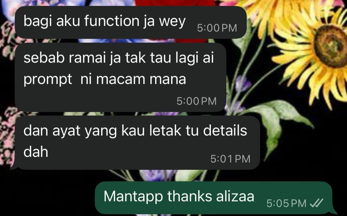 ✅ Disertakan sekali contoh-contoh Prompt Yang Saya Buat. Mungkin awak macam sangsi betul ke saya guna ChatGPT untuk buat resume. Jadi, saya sertakan sekali contoh-contoh prompt yang saya guna untuk diri saya sendiri dan juga untuk orang-orang yang nak servis resume dari saya.