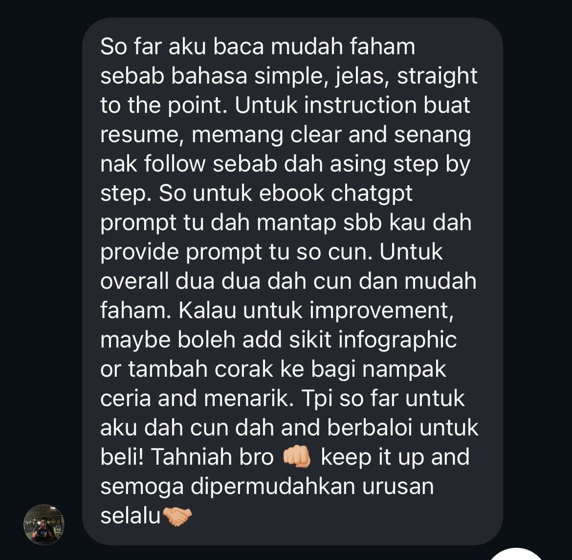 Kalau awak perlukan shortcut itu, saya cadangkan awak tambahkan ChatGPT Prompt: Seni Resume Padu ke dalam order awak.