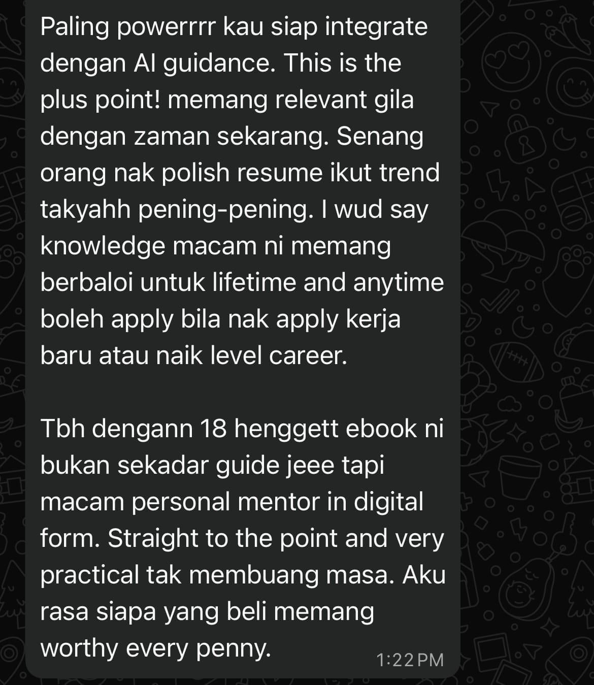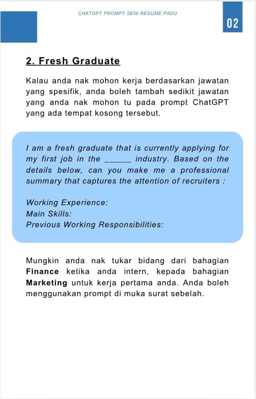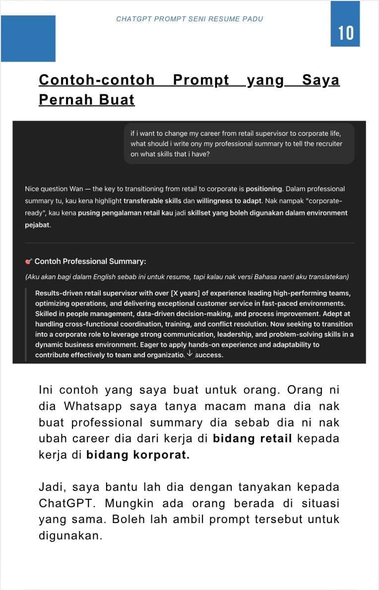 Alang-alang dah ada ebook resume ni, confirm lagi mudah kalau ada koleksi prompt sekali. Jadi, saya sarankan awak untuk ada ebook ni: